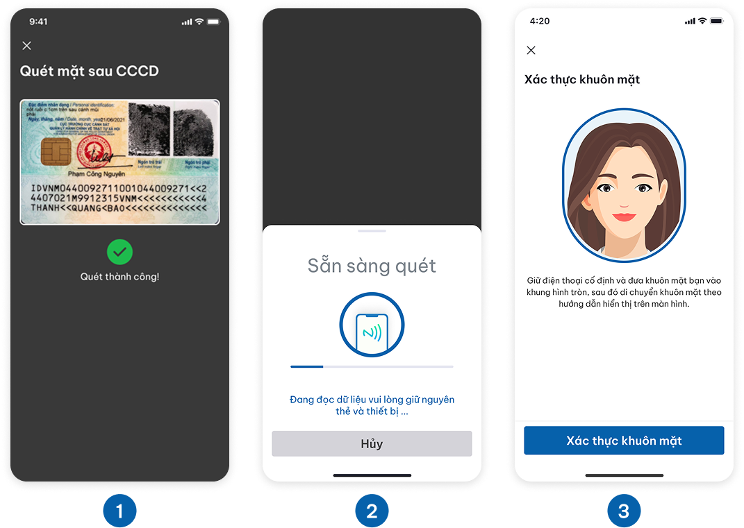 Quét mặt sau CCCD: Đưa camera điện thoại vào mặt sau của thẻ CCCD để